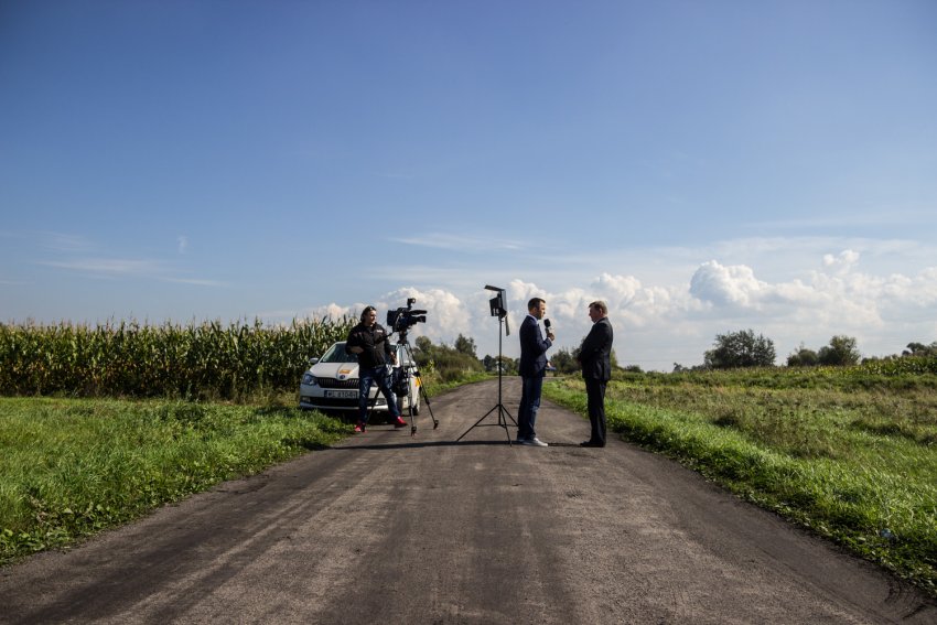 Koniec rozmowy na żywo. Można rozpiąć marynarki. Na chwilę rozmowa schodzi z oficjalnego tonu. Wójt wskazuje na pobliski dom. Z daleka widać ekipę, która się tam uwija. – Daliśmy pozwolenie na budowę, a pewnie ten dom będzie wyburzony – mówi.