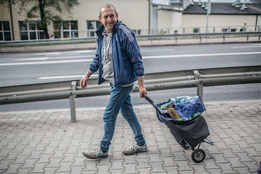 – To zależy od dnia. Raz uzbieram za 10, a raz za 100 złotych. Jest spora konkurencja? – dopytuję mężczyznę czy dzieli się z innymi rewirami. – Nie, każdy zbiera na swoim osiedlu, ale u mnie jest kilkanaście osób – odpowiada. Traktuje to jak stałe źródło utrzymania. – Ja mam mieszkanie, tylko jestem na rencie. I da się z tego wyżyć? – Jako tako tak. Rano wychodzę i o 11 jestem w domu – zapewnia wyglądający na ok. 40 lat warszawiak.