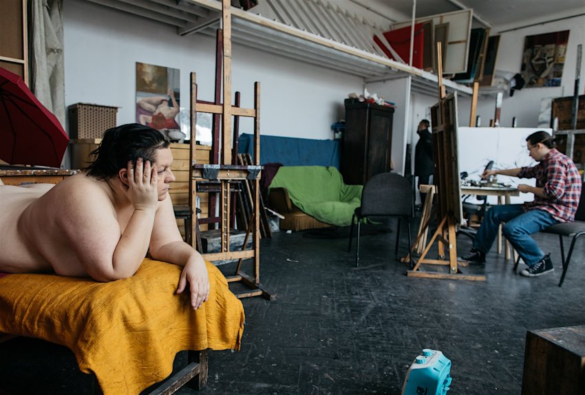 Anna zsuwa sukienkę i kładzie się na sofie. Ma rubensowskie kształty. Po czwórce dzieci trudno wrócić do dawnej wagi. – Miałam podkurczoną lewą, czy prawą nogę? – pyta malującego ją Jacka. Student przygotowuje kolejną partię farby. Decyzja o pozowaniu była dla niej przełomem w życiu.