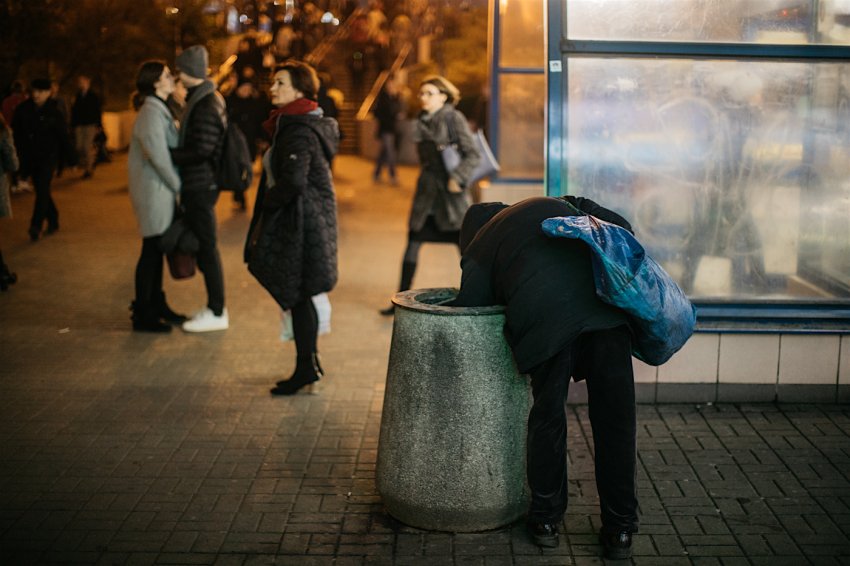 Ich towarzysze są na wyraźnym rauszu. – Tutaj, w centrum, łatwo o pieniądze. Ostatnio poprosiłem jednego pana, aby dał mi piątkę. Wyciągnął z kieszeni i dał. Po chwili zawoła i zapytał, czy dużo piję. Odpowiedziałem, że tak. Wyciągną wtedy dwie dychy na wódkę – wspomina wąsaty mężczyzna.