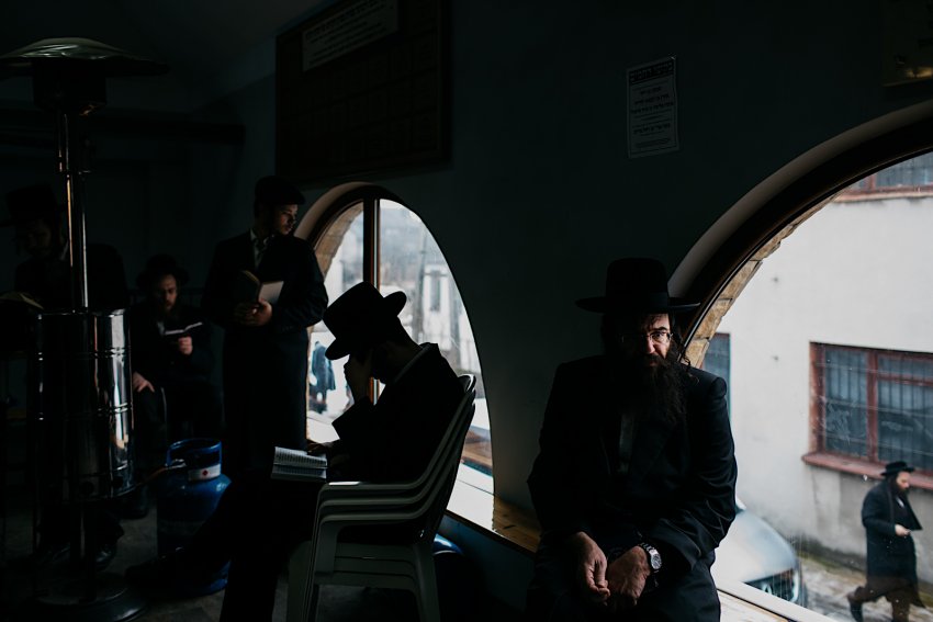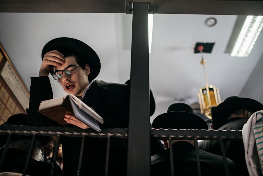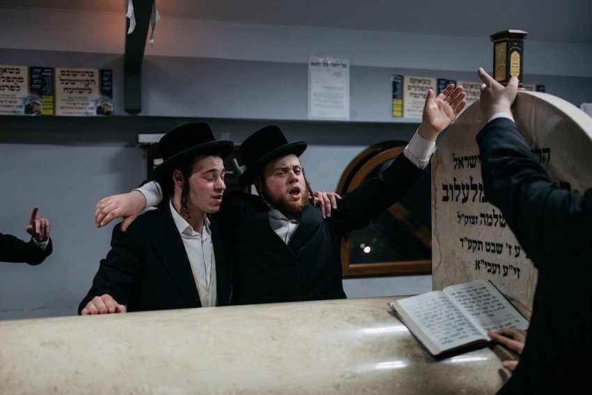 Chasydzi podczas czytania ksiąg.