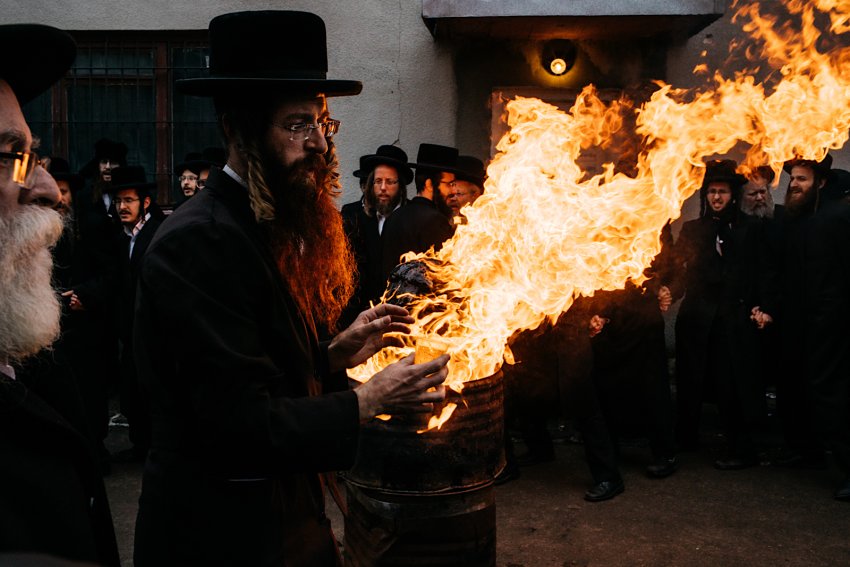 Będąc w Lelowie, zauważyliśmy tymczasem, że chasydzi bawią się na całego. Palą “wagonami” fajki, robią fikołki, piją alkohol, by następnie – już pijani – modlić się przy grobie cadyka. Lecz do wielkiego namiotu, w którym trwały modlitwy i zabawy, nie mogły wejść zainteresowane wydarzeniem kobiety. Jeden z chasydów rozdawał im gorącą zupę, bo na dworze panowało zimno.