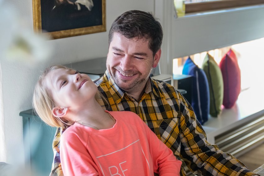 Mirosław Myszka i jedna z jego pięciu córek.
