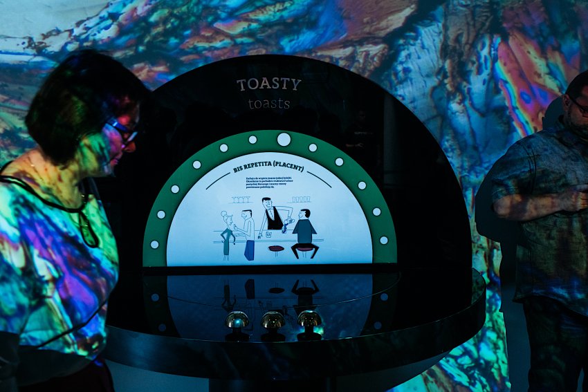 W muzeum pełno jest instalacji, które możemy bez przeszkód dotknąć, nacisnąć guzik czy zakręcić. Jedną z nich jest okrągły stół przypominający “koło fortuny” z teleturnieju. Kręcąc nim poznajemy zwyczaje towarzyszące piciu - jak strzemienny, “gorzka wódka”, “pije Kuba do Jakuba”, a wszystko to jest zobrazowane zabawnymi animacjami. Dla nas to nic odkrywczego, ale niektórzy obcokrajowcy pewnie będą w szoku.