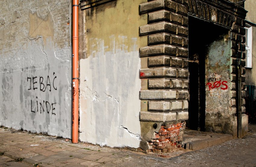 – Widzisz tę rurę? – pan Adam wskazuje na rynnę dzielącą kamienice nr 16 i 18. – To jest granica. Dotąd, od Wschodniej, rządzi ŁKS. Dalej do Kilińskiego to już jest strefa Widzewa – wyjaśnia. Choć na murach wzdłuż całej ulicy o Widzewie można przeczytać tylko, że to “Żydzew”. – Kiedyś to były zadymy. Nikt na żadne ustawki nie jeździł do lasu, wszystko działo się tu, na ulicy. Do rosołu się rozbierali. Na bejsbole. Krew się czasem lała – przyznaje.