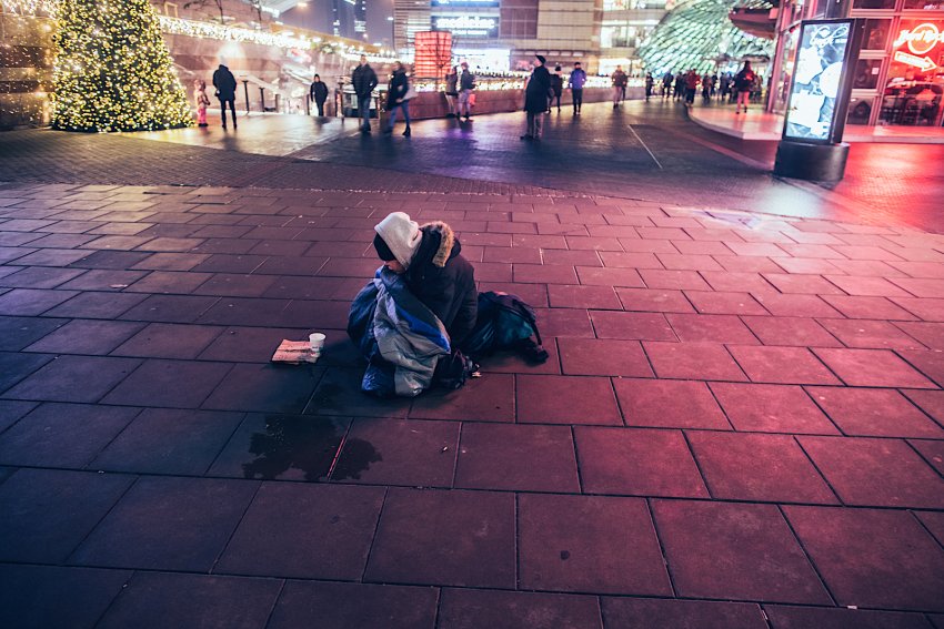 Na Dworcu Centralnym i w przejściu pod Rotundą, w tych miejscach można spotkać bardzo wielu bezdomnych.