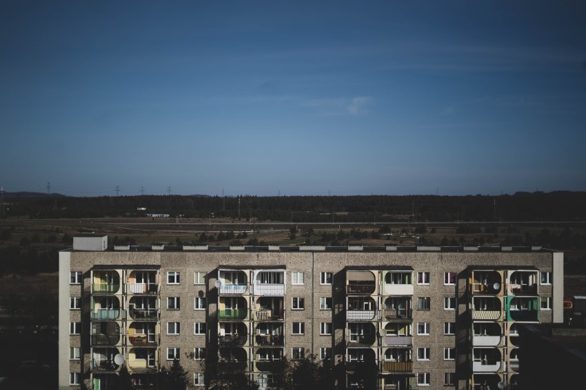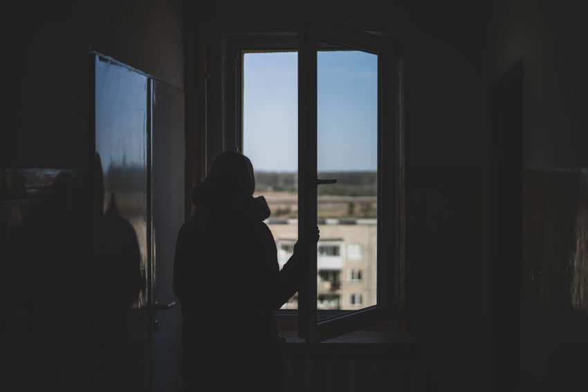 Poza parterem blok ma dziewięć pięter. Wjeżdżam windą na samą górę – klatka zakręca w lewo, po czym widzę krótki korytarz, na którego końcu znajduje się duże okno. Nie jest w żaden sposób zabezpieczone – można po prostu podejść i je otworzyć.