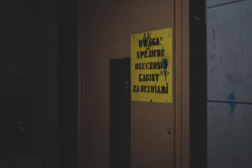 W środku jest dość klaustrofobicznie. Kręta klatka schodowa została wyremontowana przy użyciu najprostszych płytek, winda z kolei jest jeszcze stara. Wiecie jaka – taka z ręcznie otwieranymi drzwiami. Typowy dźwig ze słusznie minionych czasów.