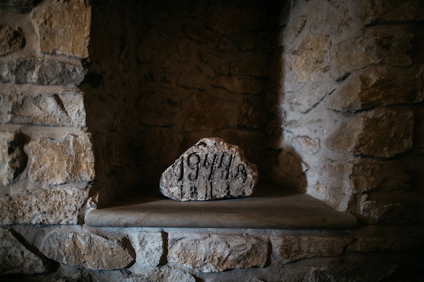 Idziemy piętro wyżej. W niszy widnieje kamień z wyrytą datą - 1944 rok. – Pytał mnie pan, czy mam jakiś ulubiony kamień na tym zamku. To jest ten – senator klepie dłonią niewielki głaz. Przywiózł go okoliczny mieszkaniec. Zamkowe kamienie służyły za budulec. – Prace na zamku zaczęły nabierać kształtu, gdy pojawił się miejscowy. Siedzieliśmy wtedy z bratem przed zamkiem. Podszedł do nas i mówi, że ma dla nas prezent. Dostać prezent od miejscowego chłopa, to ooo… Nie wiedzieliśmy, czy się cieszyć, czy obawiać – opisuje senator. Następnego dnia chłop zajechał furmanką i wyrzucił stos kamieni. Okazało się, że jego ojciec wziął je z zamku. Wykorzystał do odbudowy spalonego w czasie wojny domu.