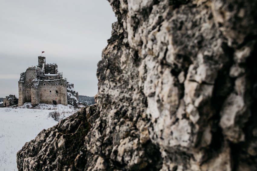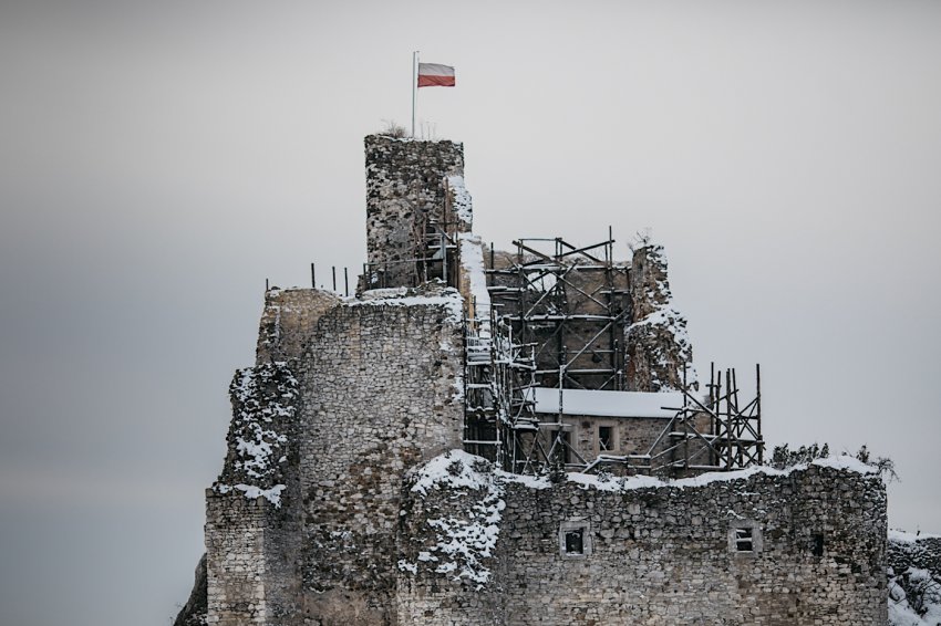 Ruszamy na zamek w Mirowie. Znów idziemy zaśnieżoną drogą przy murach bobolickiej warowni. Senator pokazuje na fragment muru nad oknem. – W średniowieczu i później, zamek był otynkowany. Gdybyśmy pokryli go tynkiem, zostałbym odsądzony od czci i wiary. Dlatego daliśmy spokój, mimo że na zabezpieczenie metra takiego surowego muru zapłaciliśmy ogromne pieniądze firmie z Niemiec – opisuje senator.