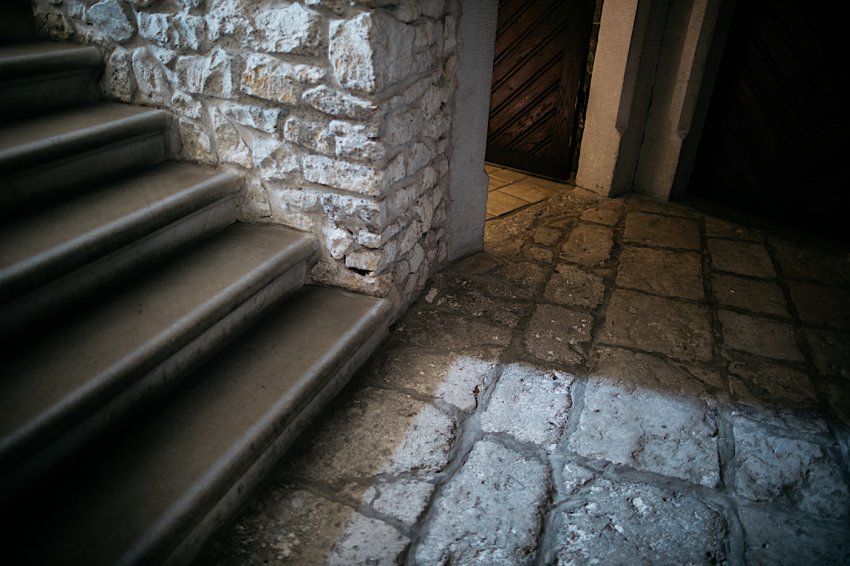 Wchodzimy do zamkowej sieni. Na ścianie wisi tabliczka, którą zawiesili jego pracownicy. Mieli dość odpowiadania na pytania, ile senator dostał kasy z budżetu państwa i UE na odbudowę. – Zero – widnieje przy każdym pytaniu. Lasecki pochyla się. W pomieszczeniu odkopano oryginalną średniowieczną posadzkę.
