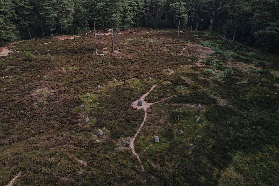 Otula mnie zapach grzybów, sosen i wczesnej jesieni. Delikatnie szumią drzewa, śpiewają ptaki, wrzosy oszałamiają swoim kolorem. Na piaszczystych ścieżkach z ziemi wystają korzenie. Muszę patrzeć w dół, żeby się nie potknąć, chociaż wcale mi się to nie uśmiecha. Wolę patrzeć przed siebie, na boki. Bo jest na co.