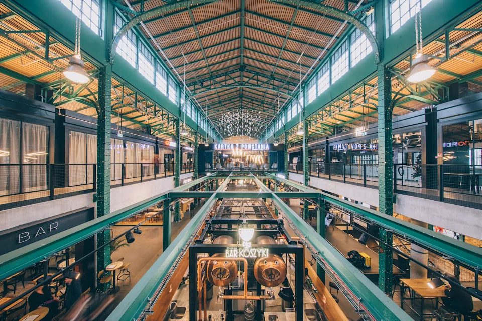 Naszym kolejnym celem jest obiekt powstały w czasach, gdy efekt cieplarniany kojarzył się, jeśli w ogóle, najwyżej ze zbyt mocną opalenizną. Hala Koszyki została po raz pierwszy oddana do użytku w 1909 roku. Drugie życie otrzymała w 2016, gdy na jej terenie rozgościły się lokale gastronomiczne, sklepy i biura.