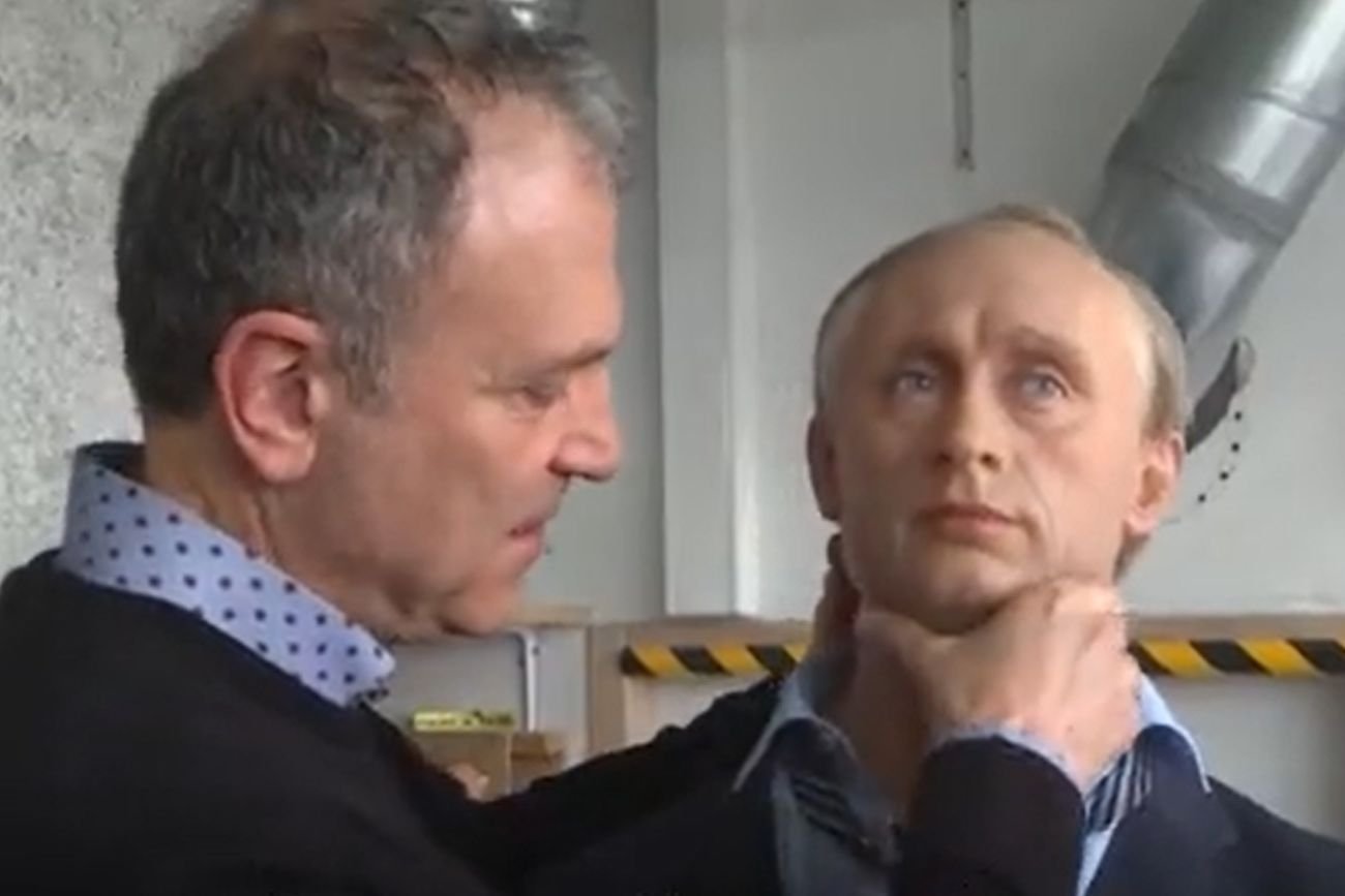 Na profilu agencji AFP na Twitterze pojawiło się krótkie nagranie z momentu, w którym dyrektor placówki demontuje figurę Putina i tym samym "pozbawia" przywódcę Rosji głowy.