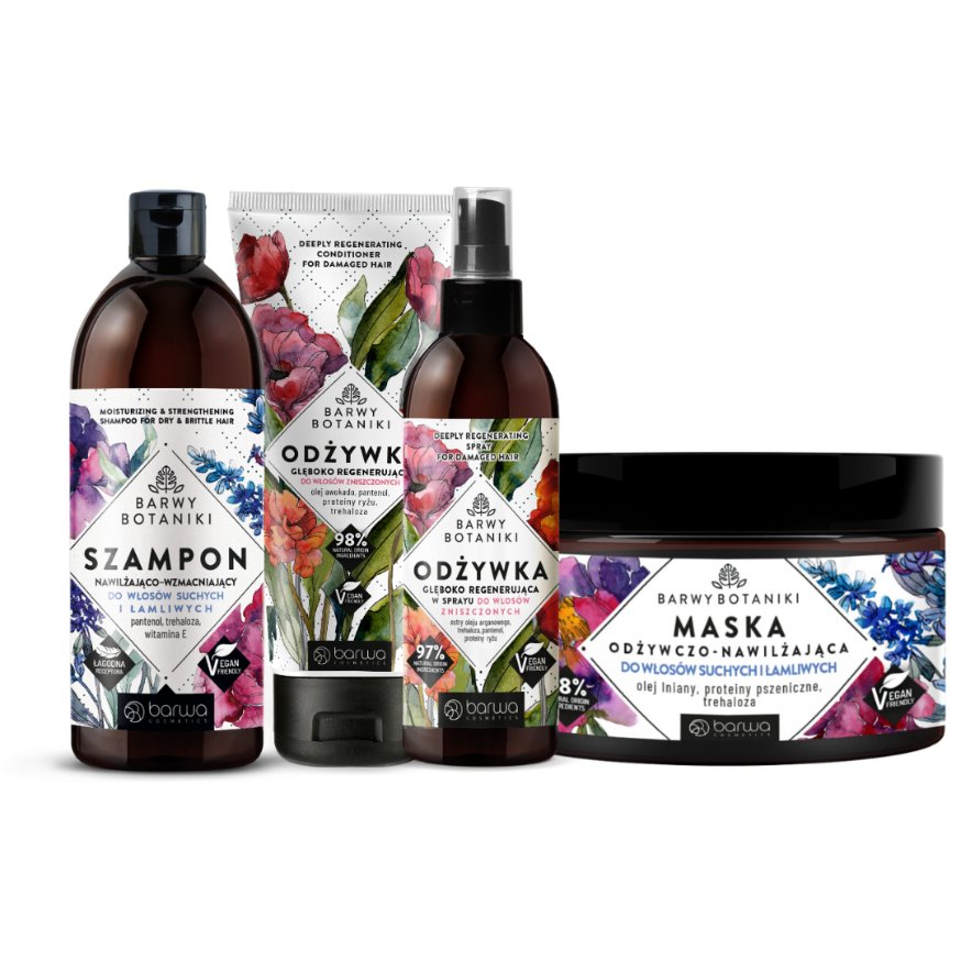 BARWY BOTANIKI to seria produktów do pielęgnacji włosów, oparta na bogactwie botanicznych składników, odpowiadająca na szczególne potrzeby włosów. Kosmetyki z serii Barwy Botaniki wzbogacone zostały o bezpieczne i doskonale tolerowane składniki aktywne w połączeniu z łagodną bazą myjącą. Wszystkie formuły są zbalansowane pod kątem PEH i w 100% wegańskie. Siła serii tkwi w indywidualnie dobranych kompozycjach naturalnych olejów, protein, humektantów, dbając o różne rodzaje włosów.
