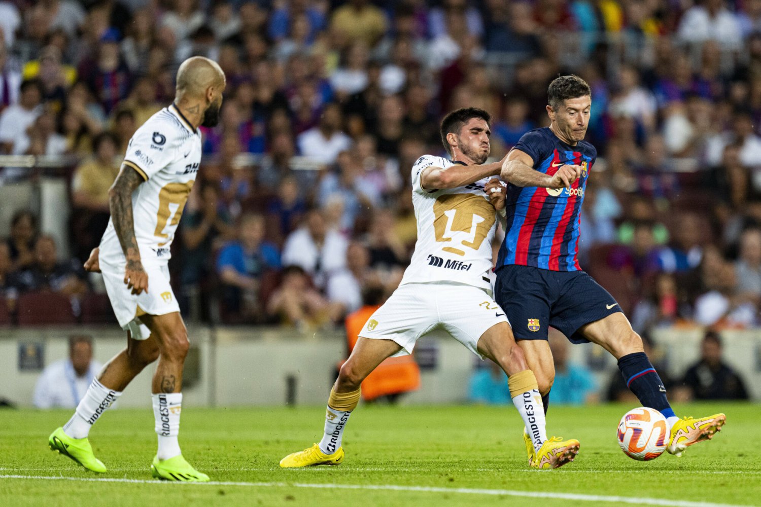 FC Barcelona rozpoczęła starcie z UNAM Pumas od bardzo mocnego uderzenia. Już w 3. minucie meczu wynik otworzył Robert Lewandowski, który udokumentował okres naporu miejscowych na defensywę rywali. Znakomicie podał mu piłkę Pedri, a nasz as minął bramkarza w polu karnym i z ostrego kąta wpakował piłkę do siatki. To jego pierwsze trafienie dla Dumy Katalonii.