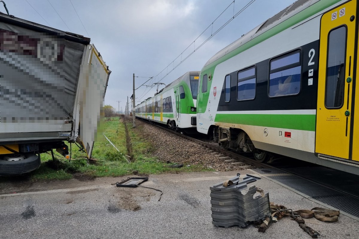 O włos od tragedii na przejeździe pod Warszawą. Pociąg osobowy wjechał w ciężarówkę