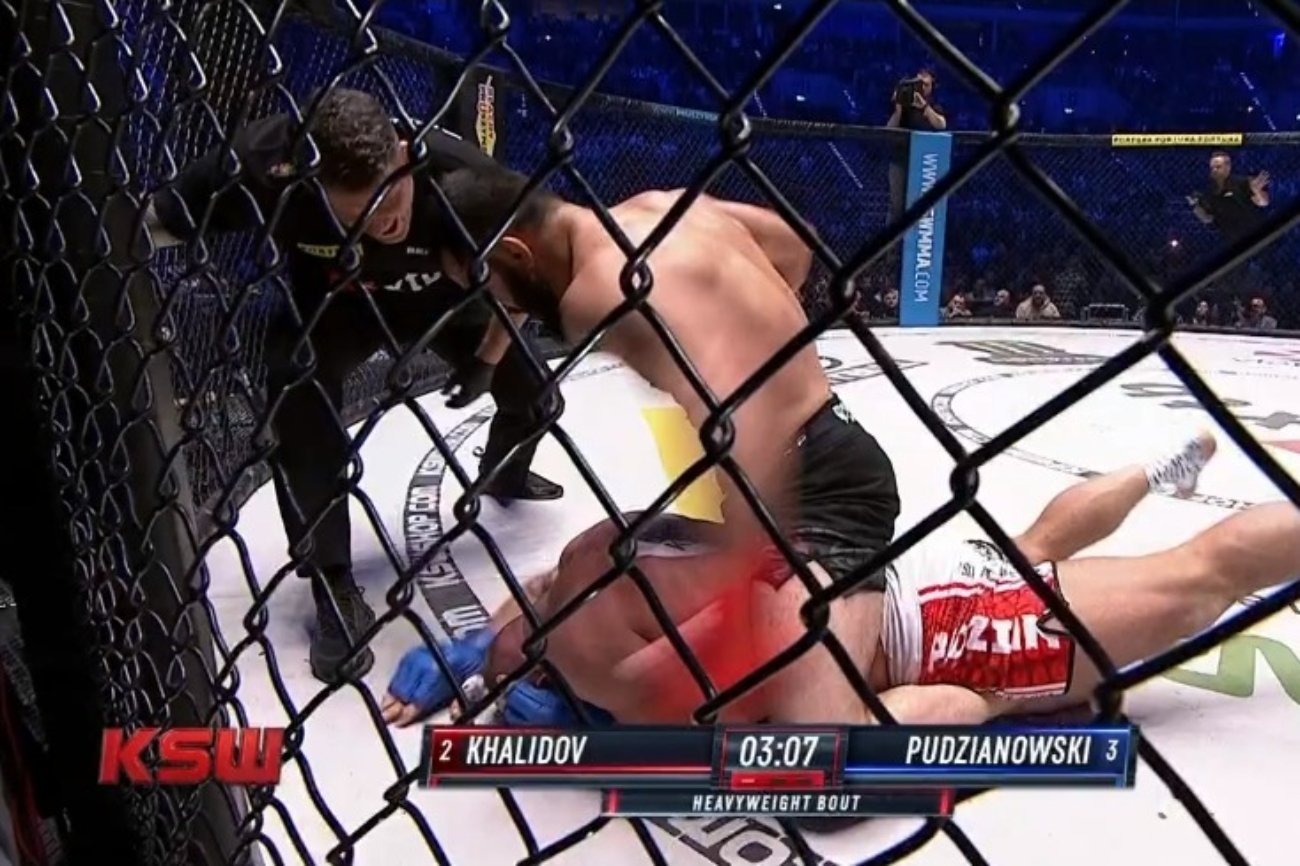 Już po nieco ponad minucie walki obaj zawodnicy trafili bowiem z klinczu prosto do parteru. Chalidow, choć wyraźnie lżejszy, wykorzystał swoje doświadczenie i na ringowej macie szybko zdominował byłego strongmana – rzucił go na ziemię i zasypał rywala gradem ciosów. Zaczęło się od potężnego uderzenia łokciem, po którym "Pudzian" próbował już tylko przetrwać, podczas gdy jego rywal dalej atakował go pięściami.