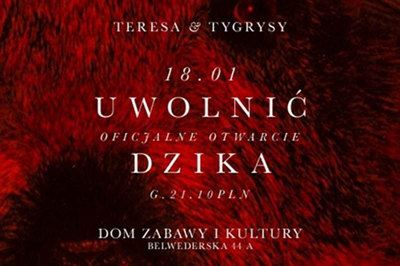 DZIK to dom otwarty. Dosłownie i w przenośni. Nowy klub, który od kilku tygodni jest na ustach całej Warszawy mieści się w pięknej, przedwojennej willi na Mokotowie. Ogromna przestrzeń zobowiązuje. W DZIKu będzie można potańczyć na prawdziwych dancingach, wziąć udział w licznych warsztatach, albo zorganizować wernisaż. Właściciele są otwarci na wszelkie propozycje. Ze swojej strony dają miejsce i dobrą energię. Do tej pory w DZIKu odbył się tylko sylwester, który jak można wywnioskować z komentarzy na Facebooku należał do wyjątkowo dzikich. Jak będzie jutro? Na pewno tłoczno, bo o DZIKu w internecie huczy. Będzie też tanecznie, bo do rytmu zagrają „Teresa i Tygrysy”. Kto się boi dzikich tłumów, niech lepiej poczeka. W końcu jutro wszystko się zaczyna, ale trwać będzie na pewno jeszcze trochę.