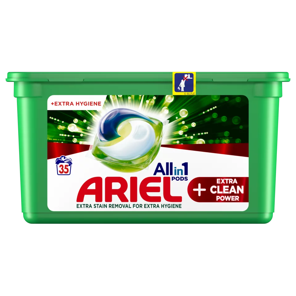 Kapsułki Ariel PODS® +Extra Clean trzymaj zawsze poza zasięgiem dzieci. Dowiedz się więcej na www.keepcapsfromkids.eu