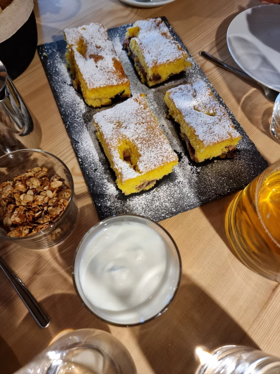 Okej, kawa mogła przyjechać z nieco dalszych rejonów świata, ale już werbena, która parzyła się w szklanym imbryku, jeszcze niedawno rosła pod naszymi oknami. Kawałek dalej widać było natomiast kurnik, którego rezydentki dostarczały jaj na pyszne, pieczone codziennie wieczorem (nos mi świadkiem!) ciasta. Jabłka, które codziennie dostawałyśmy na drogę to oczywiście również “wyrób” tutejszego gospodarstwa.