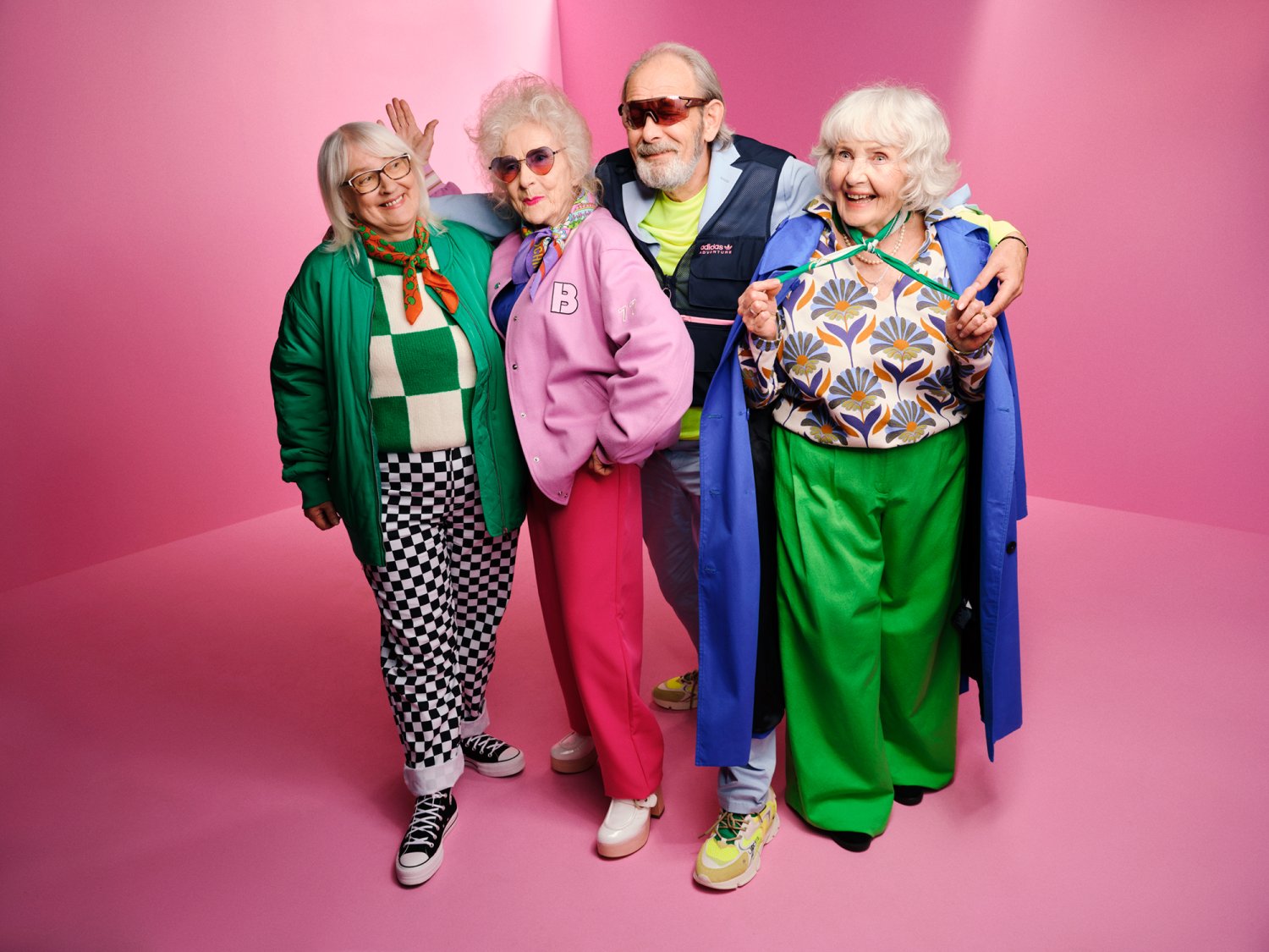 W kampanii dominują energetyczne stylizacje, które świetnie współgrają z charyzmatycznymi postaciami i żywymi kolorami w tle. DJ Wika pozuje do zdjęć, prezentując największą witalność, w pastelowej bomberce Femi Stories, z cekinowymi spodniami duńskiej marki Rotate i pasującymi do zestawu lawendowymi półbutami zapinanymi na pasek od Karino. Ania zadaje za to szyku w stylu retro, w trawiasto-zielonej marynarce Gestuz, swetrze w paski marki Levi’s i intensywnie czerwonej spódnicy Birgitte Herskind. Basia pokazuje ponadczasowe podejście do casualowego, codziennego looku, z wielkim luzem, zestawiając błękitną bomberkę Tommy Jeans, cytrynowy sweter Polo Ralph Lauren, rubinowymi spodniami Kontatto z kwiecistą apaszką Ralph Laurent. Maciej jest zwolennikiem współczesnych stylizacji inspirowanych streetwearem, dlatego do zdjęć pozuje w lawendowej koszuli w paski, z krótkim rękawem, marki Dickies i supermodnych, białych sneakersach New Balance. W innym looku prezentuje połączenie casualu z modą uliczną, dzięki kanarkowej kurtce bomber varsity Tommy Hilfiger, dopasowanym longsleevie adidas o butelkowym odcieniu i modnym kapeluszu typu bucket hat o kraciastym wzorze.