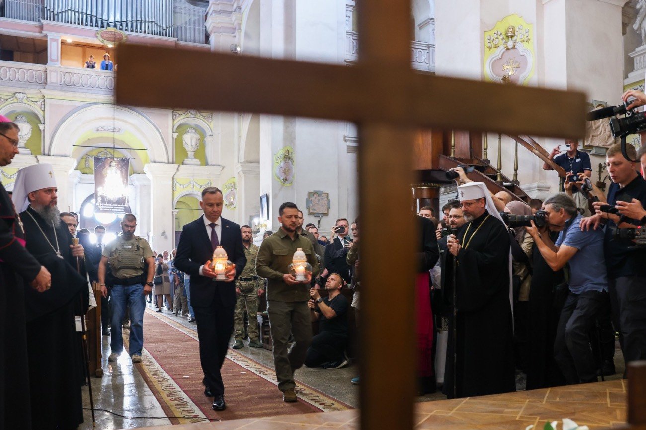 W niedzielę 9 lipca prezydent Andrzej Duda wziął udział razem z prezydentem Ukrainy Wołodymyrem Zełenskim w nabożeństwie ekumenicznym, które odbyło się w katedrze śś. Apostołów Piotra i Pawła w Łucku. Kancelaria Prezydenta zamieściła w mediach społecznościowych zdjęcia, na którym obaj prezydenci trzymają znicze.