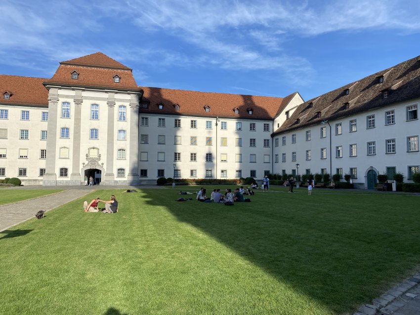 Jedna trzecia Szwajcarów deklaruje się jako niewierzący, ponad połowa zalicza się do chrześcijan - częściej do katolików, na drugim miejscu do protestantów. Z perspektywy trawnika przed opactwem St. Gallen te statystyki wydają się absolutnie nieistotne - tu odpoczywać mogę wszyscy.