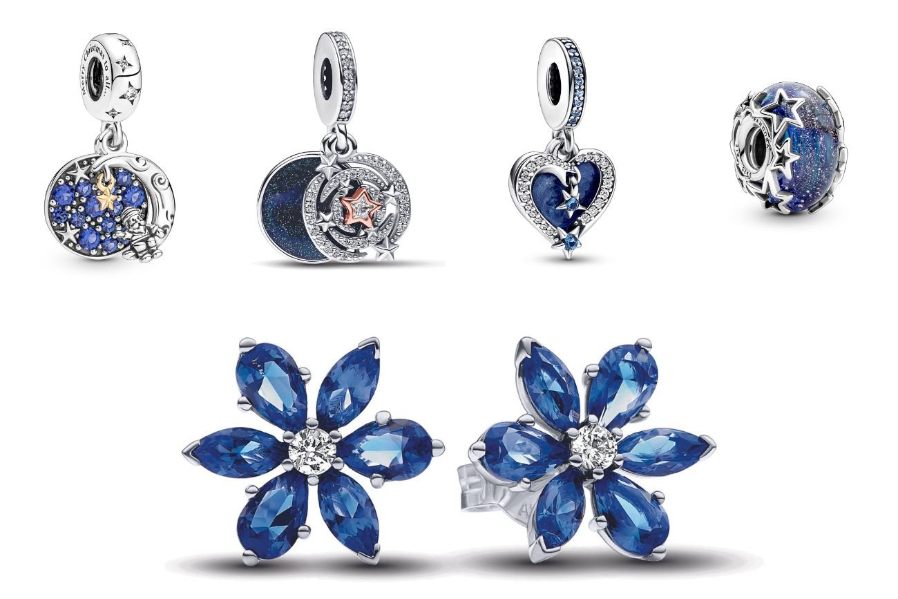 Fanki mocnych akcentów kolorystycznych również znajdą coś dla siebie. Zestaw z motywem herbarium z niebieskimi kamieniami będzie świetnie współgrał z monochromatycznymi stylizacjami. Warto też wspomnieć o charmsie ozdobionym przezroczystymi i niebieskimi cyrkoniami osadzonymi na różnych poziomach co potęguje jego trójwymiarowy efekt. Ten kunsztowny element będzie pięknie wyglądał solo na łańcuszku lub jako urozmaicenie bransoletki.
