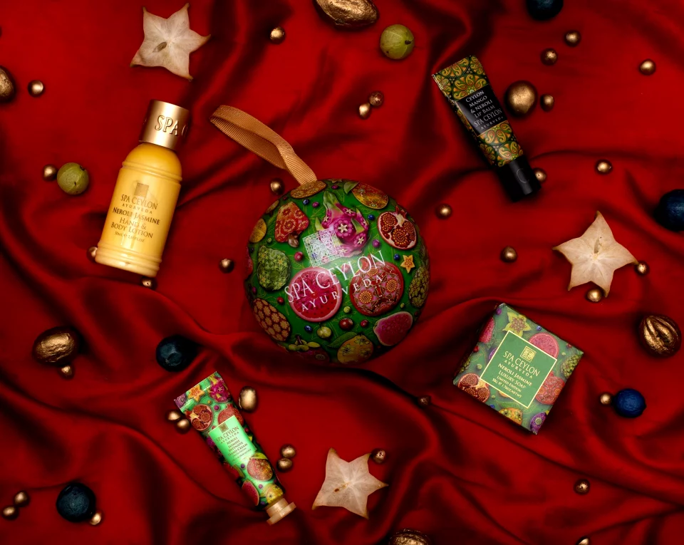 Megazestawem Spa Ceylon na tegoroczne Święta jest 24 dni rajskiego welness., Fruit Paradise. Zawiera on aż 24 kosmetyki reprezentujące pełne spektrum majestatycznych formuł Royal spa, które łączą romantyzm starego Cejlonu ze starożytną mądrością Ajurwedy. W pięknym pudełku w owocowo-rajskim wydaniu kryją się m.in. woda wyspowa z zapachem mandarynek, luksusowe mydło z olejkiem neroli, wzbogacony olejkiem z otrębów ryżowych krem ochronny na cały dzień czy masło do ciała z białym jaśminem.