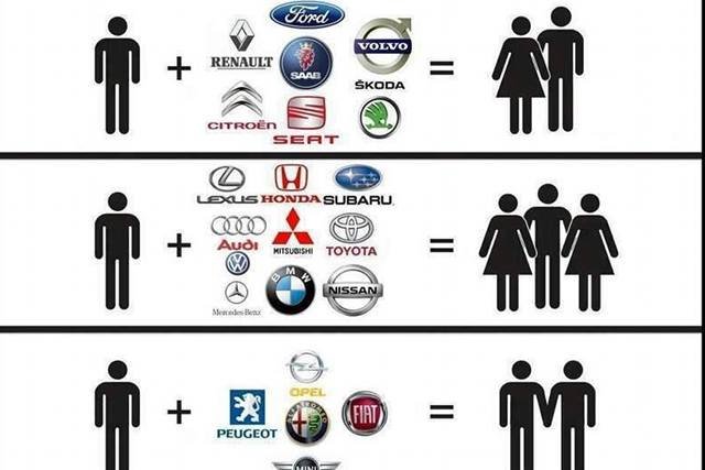 Wybierając markę nowego samochodu, należy zachować szczególną ostrożność. Logo wybranej firmy motoryzacyjnej może bowiem świadczyć nie tylko o zasobności portfela, ale i o tym, czy jesteś singlem, czy nie. Tak przynajmniej przekonuje zamieszczona na Facebooku grafika.