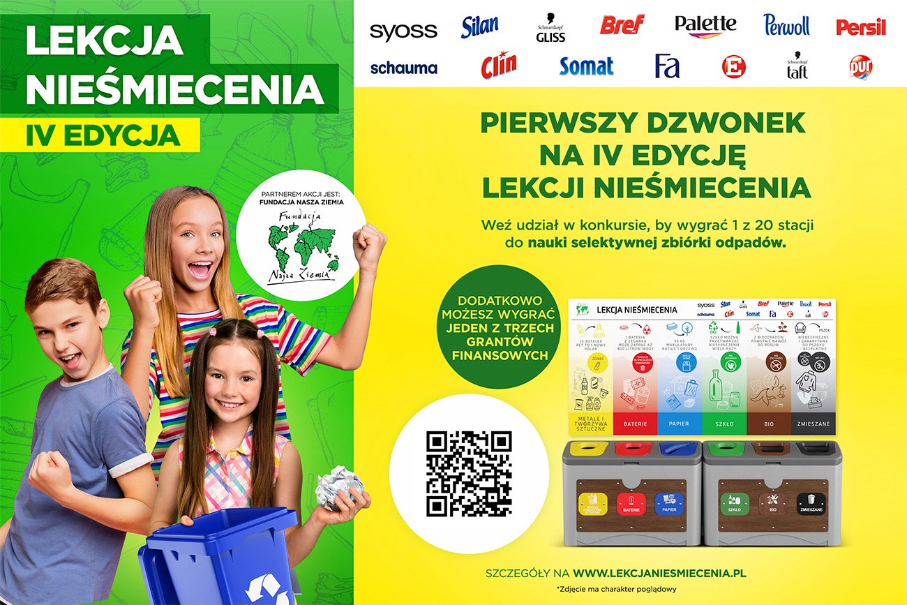 3 kwietnia 2024 rusza IV edycja konkursu „Lekcja Nieśmiecenia”, czyli projektu ekologicznego, organizowanego przez firmę Henkel Polska oraz Fundację Nasza Ziemia. Jest on skierowany do szkół podstawowych, przedszkoli oraz placówek oświatowych i ma na celu teoretyczną oraz praktyczną naukę ekologicznych nawyków, związanych z segregacją śmieci.