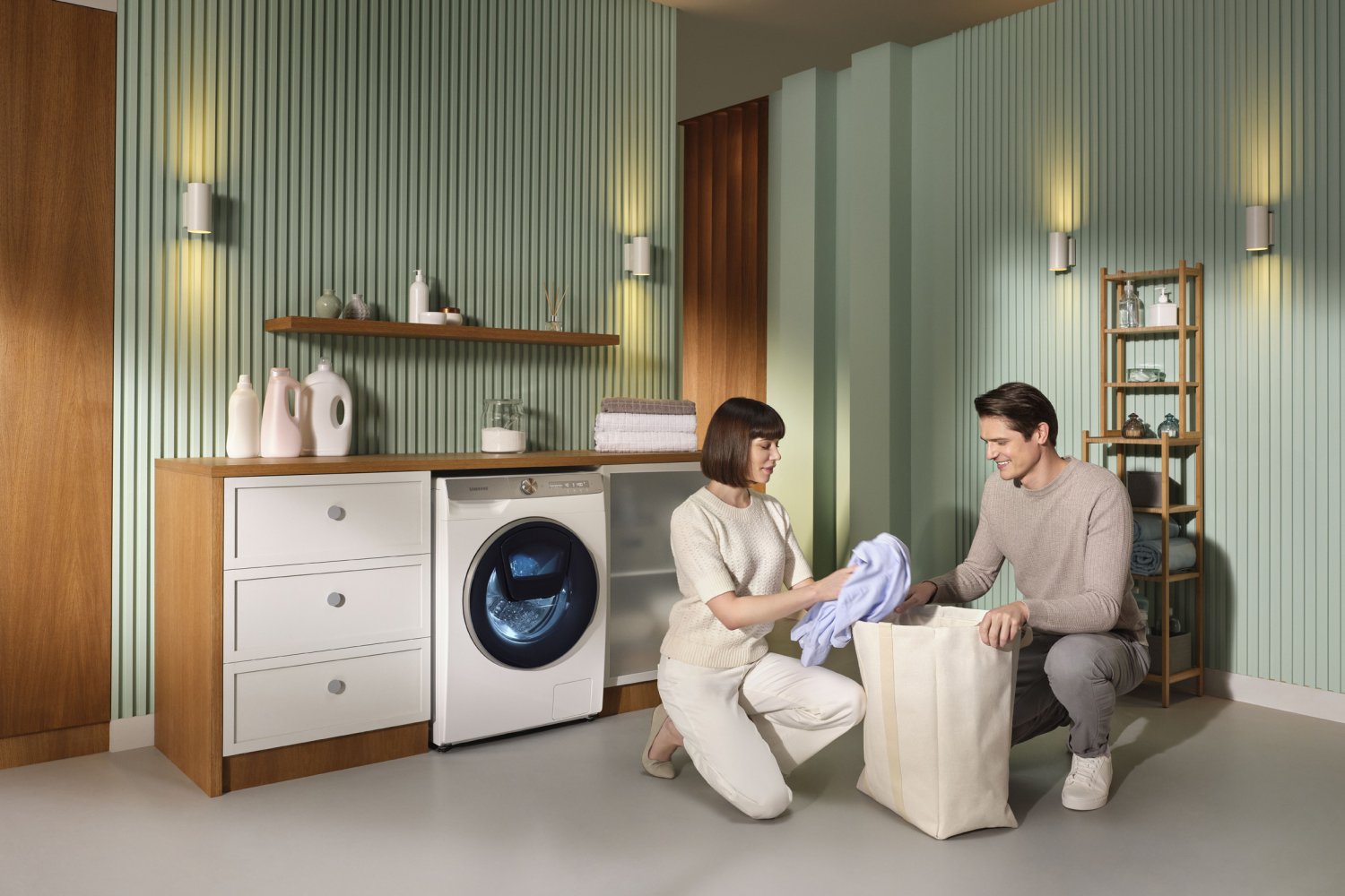 Lodówka, aby zachować świeżość produktów, musi pracować cały czas i być podłączona do prądu. Lodówki Samsung, zostały wyposażone w moduł wi-fi, który umożliwia podłączenie aplikacji SmartThings [1]. Aby oszczędzać do 15 proc. energii [2], jednym przyciskiem włączamy AI Energy Mode. W trybie urządzenie uczy się wzorców użytkowania, tworząc algorytm AI, który optymalizuje prędkość kompresora oraz cykl rozmrażania. Lodówka zapamiętuje, jak często ją otwieramy, kiedy wkładamy nowe produkty i dostosowuje pracę tak, aby oszczędzać energię elektryczną.