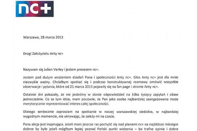 To znak naszych czasów. Prezes nC + Julien Verley postanowił zaprosić na rozmowę twórcę facebook'owego profilu krytykującego nC+. Nowej platformie pali się grunt pod nogami, bo klienci są wściekli, a fanów fanpage'a anty nC+ przybywa z minuty na minutę.