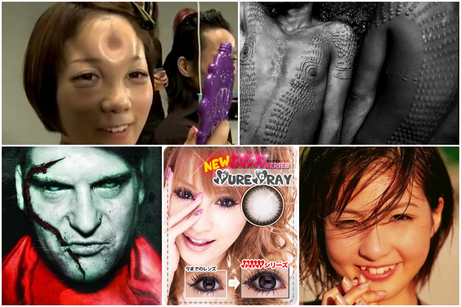 We wszystkich opisanych wyżej przypadkach uszkodzenie ciała następuje przypadkowo. Nikt nie kupował atrapy aparatu ortodontycznego ani felernych soczewek po to aby się zakrztusić lub oślepić. Niestety niektóre mody od samego początku zakładają oszpecenie i ludzie dobrowolnie na nie przystają. Szczególnie popularna jest wywodząca się od afrykańskich plemion skaryfikacja (ang. scarification) polegająca na „ozdabianiu” ciała bliznami. Wariantów jest wiele – od wycinania na skórze wzorów, przez przypalanie i zadrapywanie ciała, po celowe tworzenie blizn, które przypominają „naturalne”. Najpopularniejszą osobą, która poddała się skaryfikacji w Polsce jest Popek - raper i początkujący zawodnik MMA, tytułujący się „Królem Albanii”, który w towarzystwie kamer „upiększył” swoją twarz dwoma ogromnymi bliznami, a wcześniej poddał się zabiegowi tatuowania gałek ocznych. Fraza „skarifikejszyn modifikejszyn”, którą wypowiedział w filmiku (jest on zbyt drastyczny, aby go publikować) przeszła już do kanonu internetowych memów.