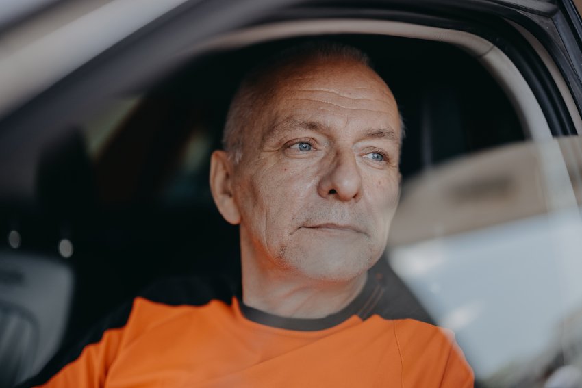 Jarek w swoim samochodzie wozi narządy. Fot. Maciej Stanik