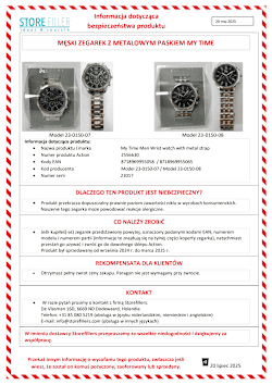 Firma Storefillers (dostawca) wycofuje z rynku męski zegarek z metalowym paskiem marki My Time z powodu przekroczenia dopuszczalnego poziomu niklu. Noszenie zegarka może prowadzić do reakcji alergicznych. O które modele chodzi?