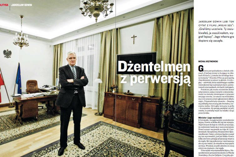 Znad telewizora gabinet obserwuje figurka Jezusa przybitego do krzyża. To pokój ministra sprawiedliwości Jarosława Gowina. Wśród drewnianych mebli i grubych zasłon, na białym tle ścian krzyż rzuca się w oczy. Artykuł w tygodniku Wprost o ministrze nie przykuł mojej uwagi na tyle, na ile przykuło ją właśnie zdjęcie ilustrujące tekst. Czy minister powinien mieć w gabinecie symbole religijne?
