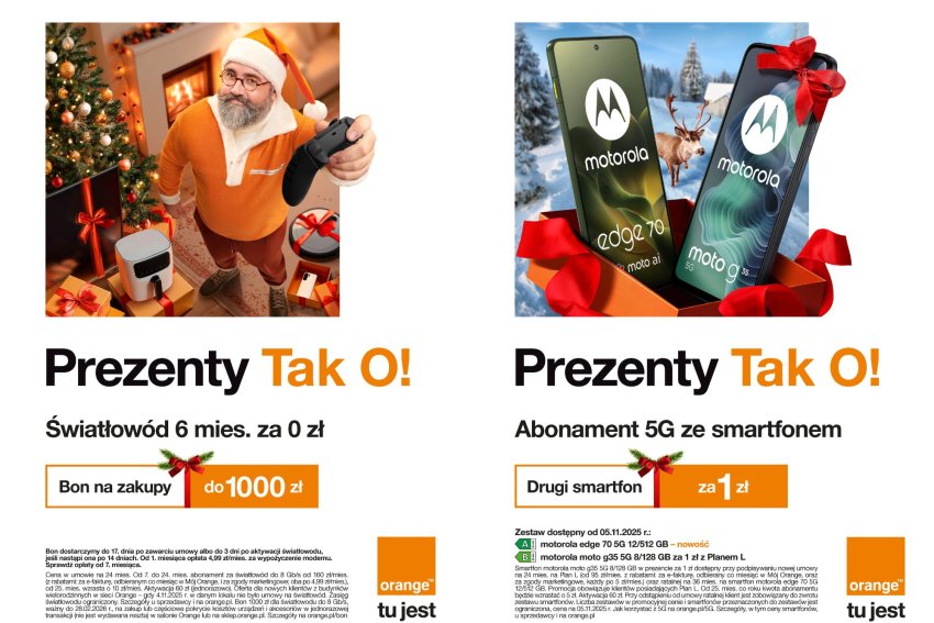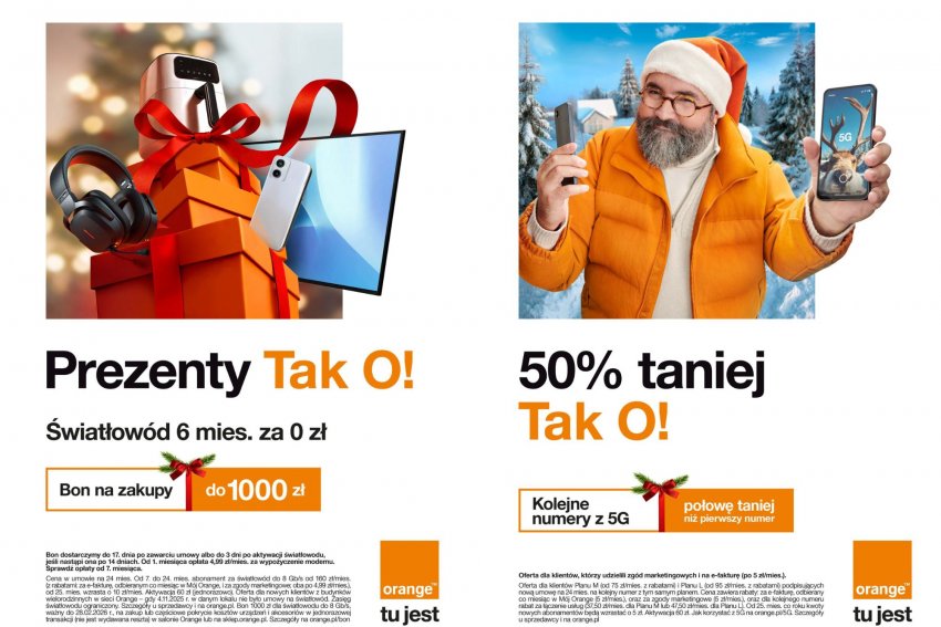 W tym roku oszczędzanie na wykorzystywanych do rozrywki i pracy usługach w pakietach rodzinnych proponuje pod choinkę Orange. Z myślą o przedświątecznych zakupach pomarańczowy operator przygotował promocję świąteczną, dzięki której możecie wkroczyć do nowej ery ultraszybkiego internetu domowego, a także zaoszczędzić na płatnościach za telefon i zakupach urządzeń RTV i AGD!