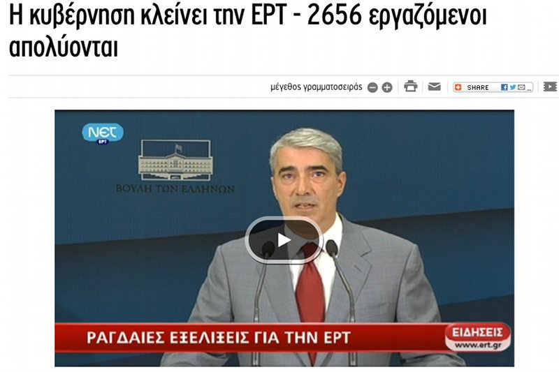 Greckie media jeszcze nigdy nie pokazały sytuacji panującej w kraju tak rzetelnie, jak dziś. Z powodu oszczędności, tamtejsze władze postanowiły zamknąć rodzimą stację telewizyjną i radio ERT. Ma to pokazać obywatelom, że w czasie kryzysu finansowego, nie będzie świętych krów.