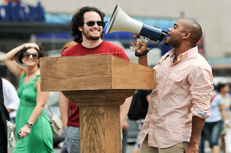 Wszystko odbywało się na środku Union Square, bardzo ruchliwego miejsca w Nowym Jorku. Kolektyw ustawił tam podium i podłączył megafon. Do powiedzenia czegoś miłego zachęcał napis Say Something Nice. Fabryka dobrej energii. Wystarczyło poświęcić kilka sekund, żeby wysłać w kosmos trochę dobra. Mała Rzecz. Najnowsza akcja kolektywu polegała na zaproszeniu przechodniów do dyrygowania orkiestrą Carnegie Hall. Nagranie z tej i poprzednich akcji można obejrzeć na http://improveverywhere.com/