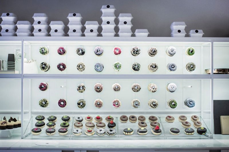 Pączki w sklepiku są wyeksponowane jak biżuteria. To sprawia, że wydają się być towarem luksusowym, czymś więcej niż zwykłym pączkiem. Sprytne, prawda? Fakt, że w kuchni wykorzystuje się przede wszystkim organiczne składniki, rozgrzesza fanatyków zdrowego żywienia.