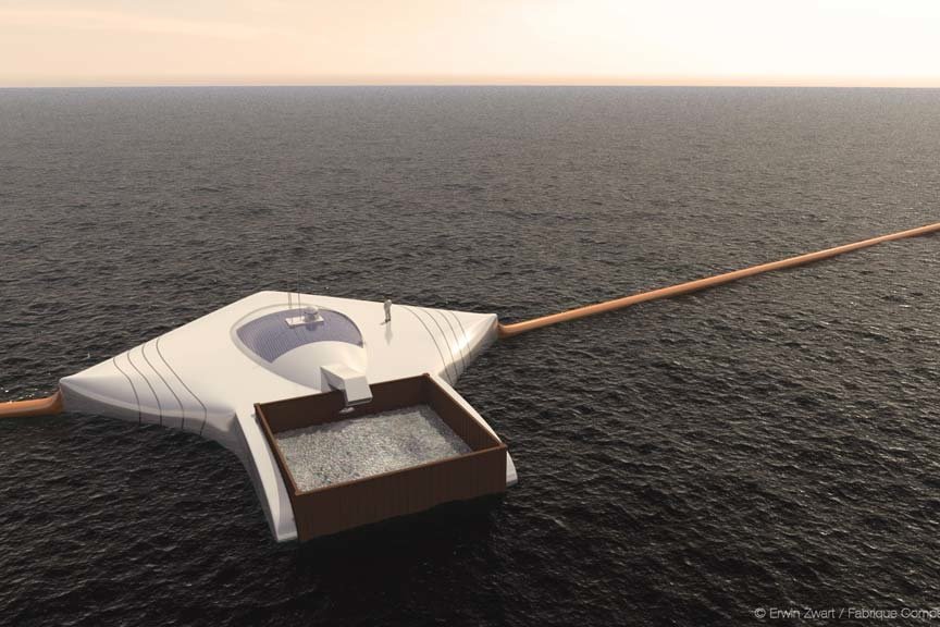 Ocean Cleanup Array to stacja która ma jednocześnie wyłapać i przetwarzać plastik pływający w oceanach. Zamiast poruszać się po nim, powinna zostać zakotwiczona w kilku strategicznych miejscach i przez kilka lat po prostu pozwalać wodzie z oceanu przepływać przez coś w rodzaju gigantycznego lejka, który oddzieli śmieci od plantkonu, przesączy i zbierze, by potem sprzedać do recyclingu. Jego wynalazek ma zminimalizować zagrożenie dla ryb.