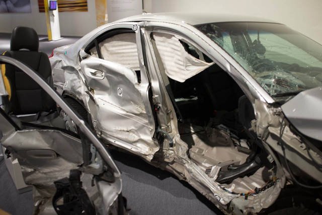 Powyższe zdjęcie przedstawia rezultat symulacji rzeczywistego wypadku z udziałem Volvo S60 przy sumarycznej prędkości 130 km/h. Pasażer, który siedział z boku miał jedynie pęknięte żebro, nie miał żadnych innych obrażeń, gdyż siła zderzeniowa została rozproszona na cały pojazd, m.in. na specjalne, wzmacniane belki systemu SIPS.