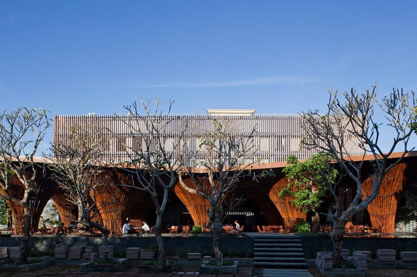 Struktura jest niezabudowana, otwarta, ale jednocześnie dość sprytnie zaprojektowana, by instalowanie klimatyzacji było zbędne. W cieniu bambusowych filarów, można naturalnie się schłodzić i odpocząć. Ich forma jest inspirowana tradycyjnymi, wietnamskimi koszami rybackimi, a na całą strukturę składa się ich aż 15. Kawiarnia, chociaż nieosłonięta jest w pełni odporna, nawet na tropikalne ulewy, charakterystyczne dla klimatu Wietnamu.