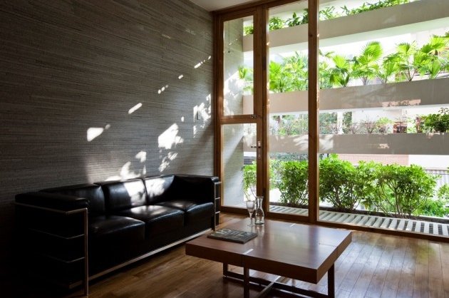 To niecodzienne rozwiązanie ma zastosowanie nie tylko dekoracyjne. W domu zainstalowane zostały duże okna, żeby do wnętrza dostawało się jak najwięcej światła słonecznego. Jednak Ho Chi Minh to jednak dość głośne i zanieczyszczone przez ruch samochodowy miasto. Warstwa roślin skutecznie tłumi dochodzące z ulicy hałasy i ogranicza docierające do domu spaliny. Ekologiczny system nawadniający zbiera deszczówkę i równomiernie podlewa żywą fasadę.