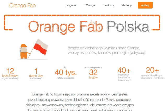 Firma Orange postanowiła pomóc przedsiębiorcom mającym pomysł na startup. W tym celu stworzyła program Orange Fab, którego uczestnicy będą mogli liczyć na wsparcie finansowe, szkolenia oraz pomoc techniczną. Osoby zainteresowane udziałem w projekcie mogą się zgłaszać do 24 marca.