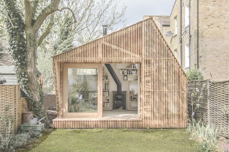 Architekci z młodego studia Weston Surman & Deane zaprojektowali taką miejską samotnie dla pisarza trudniącego się tworzeniem opowiadań dla dzieci. Domek jest w całości zrobiony z drewna i ogrzewany tylko małym piecykiem, ponieważ jest niewielki, to w zupełności wystarczy, nawet w chłodniejsze miesiące. Jego największą zaletą jest urocza, ażurowa fasada, która wpuszcza do środka dużo światła, jednocześnie zapewniając pisarzowi intymność. Architekci zaprojektowali także tanią biblioteczkę z przetworzonych płyt OSB, w której właściciel może przechowywać swoją kolekcję książek.