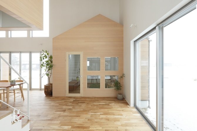 O ALTS pisałam już kilka tygodni temu przy okazji tekstu o drewnianym wnętrzu rodzinnego domu w Kioto. Motyw domku ze spadzistym dachem powtarza się w projektach tego studia. Widać, że architekci lubią także mocne akcenty kolorystyczne, w spokojnych, naturalnych wnętrzach.