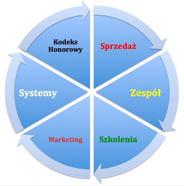 #6 Kodeks Honorowy. Określenie to do biznesu wprowadził Blair Singer, mój wielki nauczyciel. Wiele firm podpatruje duże koncerny i wymyśla swoje misje, deklaracje wartości itp. To wszystko jest ważne, lecz ma jedną zasadniczą wadę. Zostaje narzucone z góry - przez zarząd lub właściciela. Kiedy jednak powiesz ludziom, że sami mogą stworzyć zbiór zasad, taki własny Kodeks Honorowy, otrzymasz potężne narzędzie dla firmy. To, co pochodzi od ludzi, jest przez nich samych przestrzegane. Pracownicy z Kodeksem Honorowym czują się dumni, mają szacunek do siebie i swojej pracy. To Kodeks Honorowy sprawił, że odniosłem wiele sukcesów w pracy. Bardzo Ci go polecam.